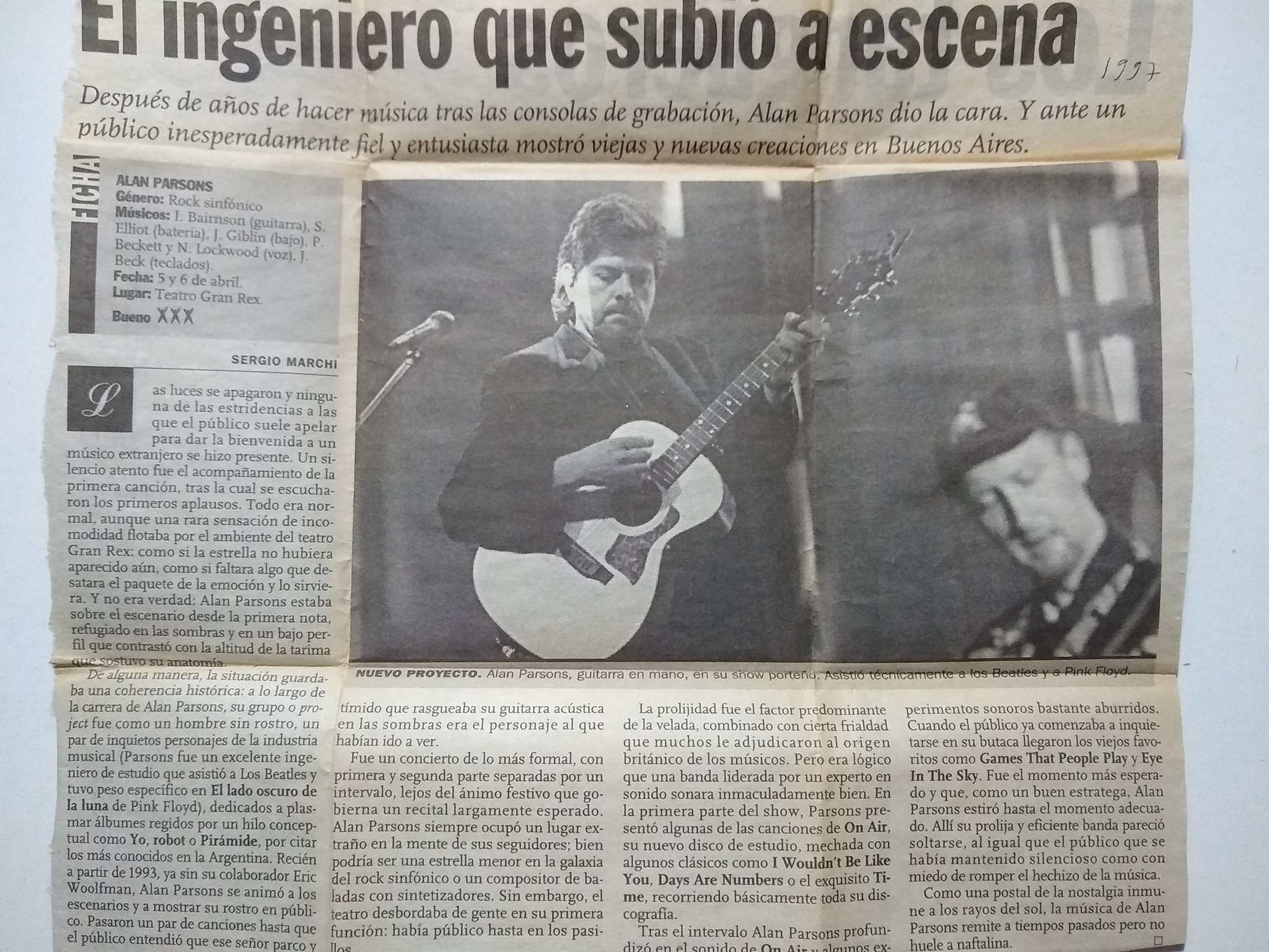 Alan Parsons Live Project se presentó el 20 de Septiembre de 1997 en el Teatro Gran Rex de Buenos Aires.